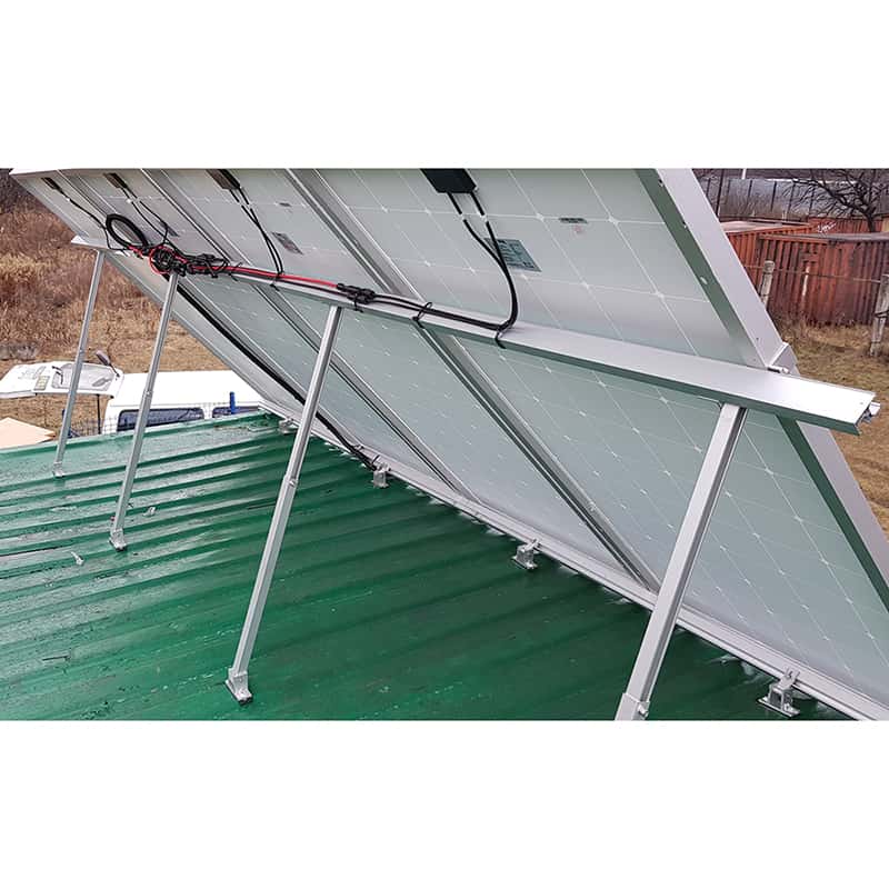 Данный комплект предназначен для монтажа солнечных батарей на плоской или наклонной поверхности (земле, крыше из мягкой черепицы либо металлочерепицы) в один ряд. Регулируемый угол наклона ( от 15 до 30 градусов ), позволяет эффективней использовать батареи, за счет изменения площади воздействия прямых солнечных лучей.